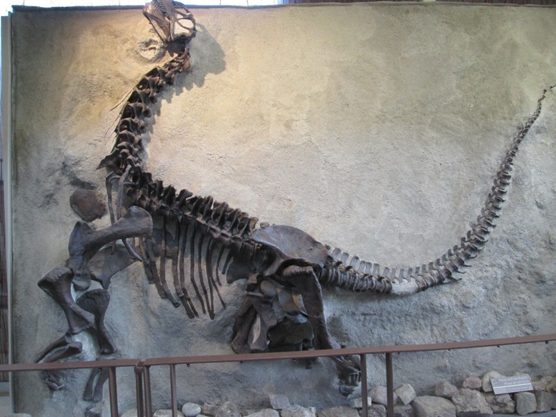 There’s a rather sad story behind this amazing paleontological find. Evidently the site used to be a riverbed. During a drought, many dinosaurs died in the area. In the course of subsequent flooding events, their skeletons were covered with mud and sedimentation and eventually fossilized. Later they were exposed by the uplifting of the Uintas Mountains, which caused the rock that had been beneath the ground to be pushed up out of it, leading to paleontologist Earl Douglass’ amazing discovery back in 1909.