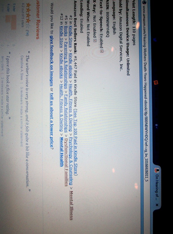 On Hearing of My Mother’s Death Six Years After It Happened: A Daughter’s Memoir of Mental Illness is on sale for just $0.99 for Kindle through February 17th. I’m happy to report that the promotions I scheduled seem to be working: